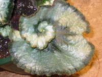 Outside, it’s dark, and there is an inch of frozen ice mixed with snow on the ground, and the sleet is pounding fiercely at the windows. Inside, a warm, bright, and humid tropical paradise. There is trouble in paradise, though, at least as far as my Begonia Rex "Escargot" is concerned. This is an amazing variety that was bred in Holland and introduced in the UK in the fall of 1998; I brought a specimen back from Vancouver’s magical Southlands Nursery a couple of months ago.