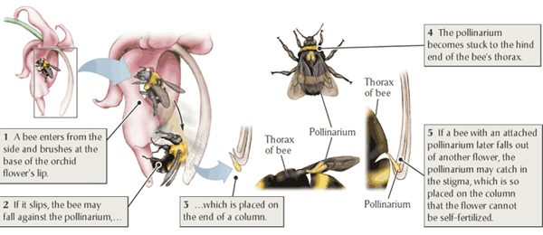I actually think it looks like a bird in flight, right down to the two eyes. I was curious to know if the appearance of the bloom has any role in pollenation (as in, fooling some creature into humping or bumping it and transferring the pollen that way — don’t laugh, it really happens), but, apparently not. Stanhopeas, which are from Central and South America, are are pollinated by euglossine bees that are attracted by the scent: