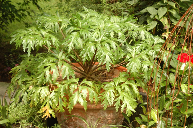 The leaves are quite pretty — kind of fern-like. And despite what some of the sites I’ve found have said, my Geranium maderense is much happier in the shade. When the sun comes out the leaves wilt with a decided pout.