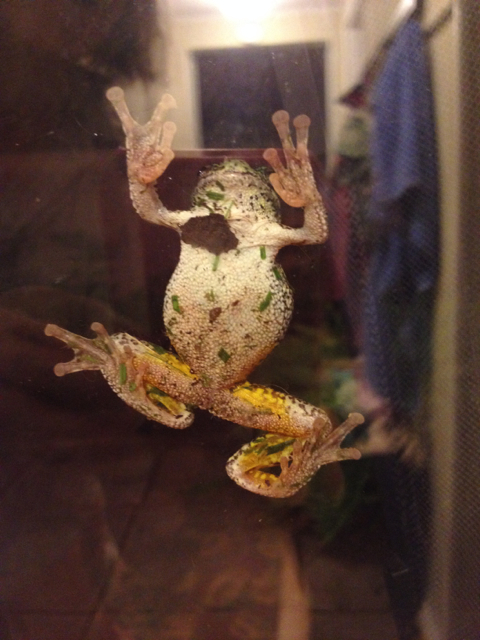 Usually it’s the dog that wants in, and Turbo takes exactly the same dramatic pose when it’s dinnertime and the door is between her and her food bowl. Mr. Tree Frog seems to have caught a moth between the door glass and his body, what’s he going to do – crush it to death?