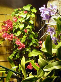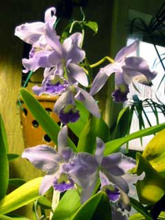Two of the five inflorescents on the cattleya Portia var. coerulea have bloomed, they look especially pretty beside the pink bougainvillea blooming in the corner of my grow room.